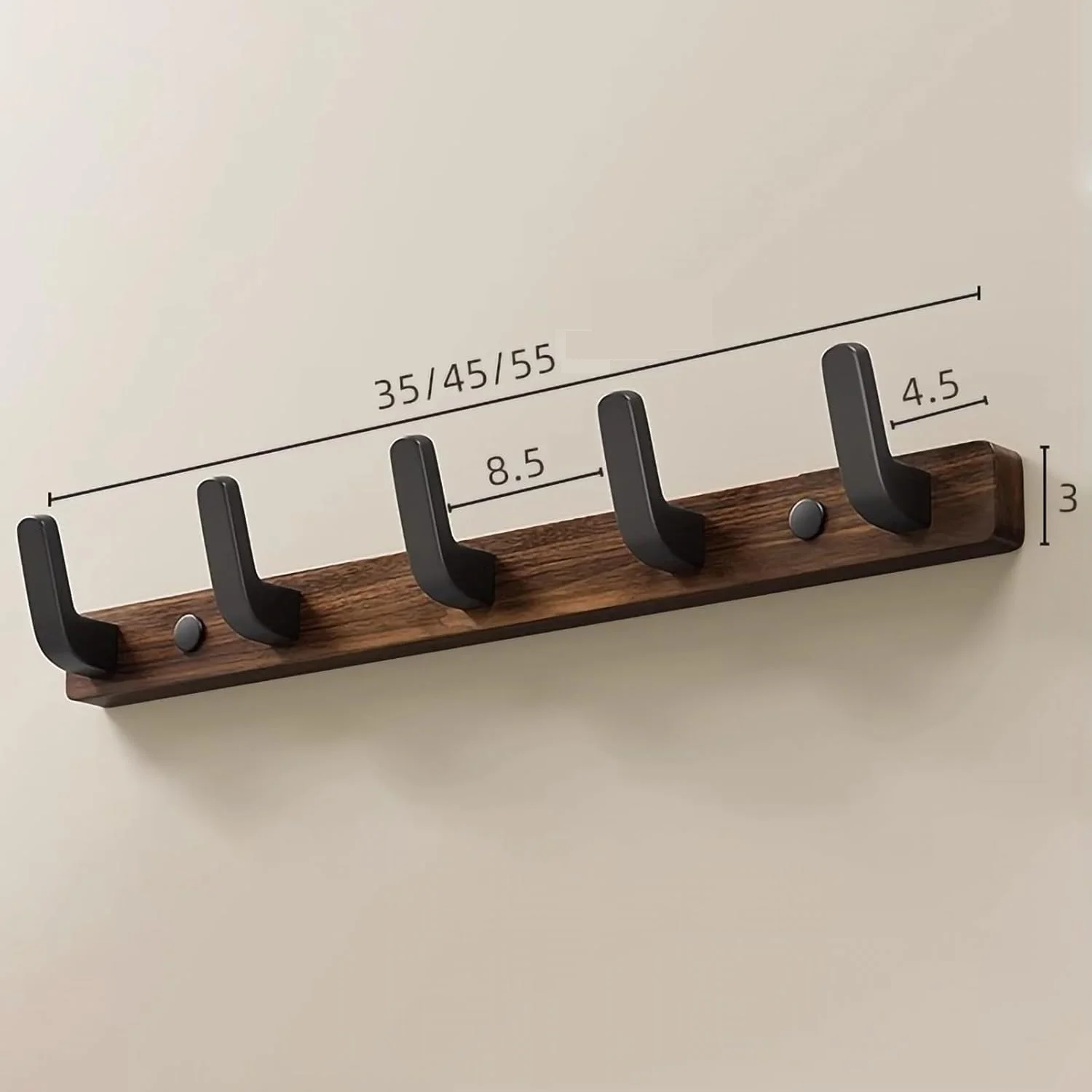 Equipped with four wooden hooks, it provides ample space for hanging clothes, bags, and other items.